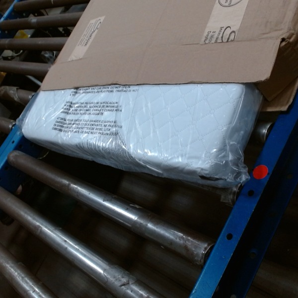 This Dream On Me mini crib mattress, model 24x, is designed for mini and portable cribs, measuring 38 inches long, 24 inches wide, and 3 inches high. It features a fiber core for firm support and a waterproof, vinyl cover for easy cleaning with soap and water. The mattress is Greenguard Gold Certified, hypoallergenic, and made in the USA with a square corner design. It weighs 2.5 lbs and meets safety standards set by CPSC/ASTM, passing flammability, phthalate, lead, and toxicity tests. Please allow 24-72 hours for the mattress to expand to its full shape after unboxing.