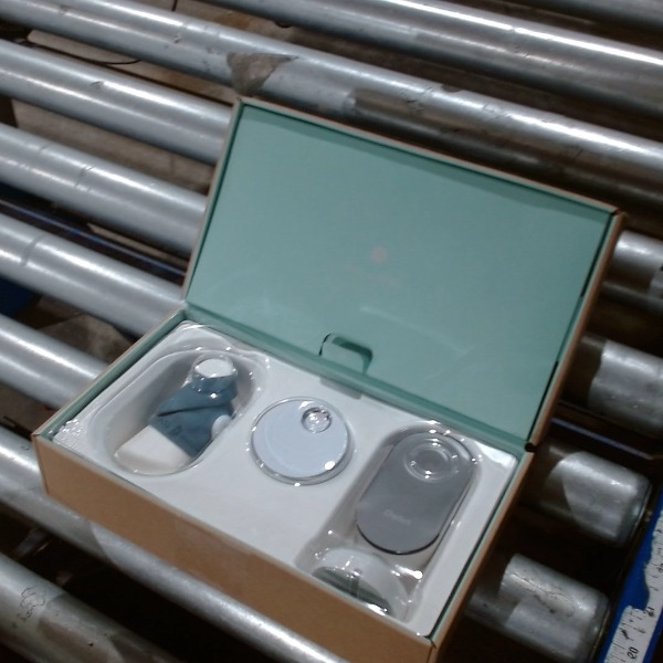 This Owlet Dream Duo Smart Baby Monitor, model PS03NMWUSN, features a camera and a smart sock sensor. The camera provides a video feed, while the smart sock monitors baby's heart rate and oxygen levels. This Owlet Dream Duo Smart Baby Monitor is being sold "As-Is".