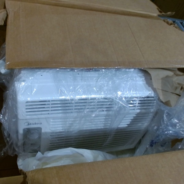 This Midea air conditioner, model MAW05M1BWT, is a white window unit designed for cooling. This Midea Air Conditioner is being sold "As-Is". **Missing Front 2 Dials To Adjust Temp and Speed**.
