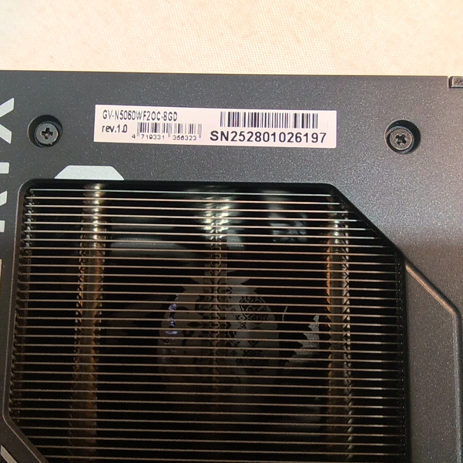 GIGABYTE GeForce RTX 5060 WINDFORCE OC 8G Graphics Card, Cooling System, 8GB 128-bit GDDR7, PCIe 5.0, Manufactured by NVIDIA, DisplayPort & HDMI - Video Output Interface, GV-N5060WF2OC-8GD Video Card This GIGABYTE GeForce RTX 5060 Graphics Card is being sold "As-Is". Model Number: GV-N5060WF2OC-8GD S/N: SN252801026197 *TESTED* POWERS ON AND DISPLAYS