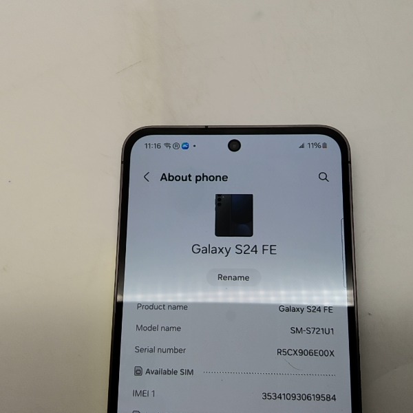 This Samsung Galaxy S24 FE Smartphone is being sold "As-Is". Samsung Galaxy S24 FE 128GB US Version, Unlocked Android Smartphone with 50MP Camera, 8K Video, Long Battery - Graphite MN: SM-S721U1 SN: R5CX906E00X *TESTED* POWERS ON, CHARGES, DISPLAYS - CHARGER NOT INCLUDED SPEAKERS, TOUCHSCREEN AND BUTTONS FUNCTION DEVICE IS A DEMO PHONE