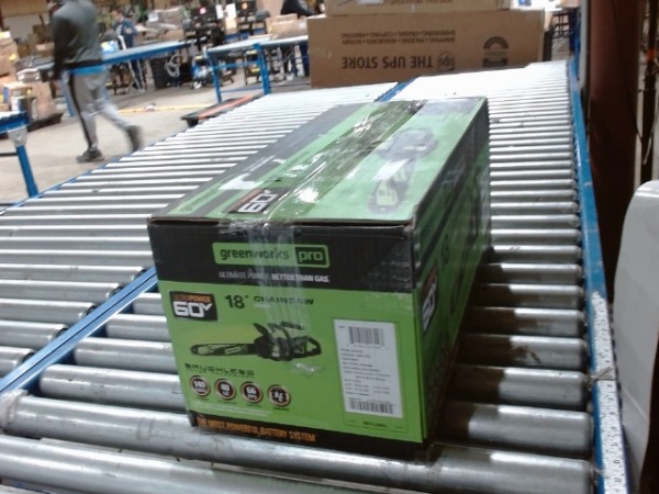 This Greenworks Brushless Cordless Chainsaw, model CS60L4R3, is a power tool designed for cutting. This Greenworks Brushless Cordless Chainsaw is being sold "As-Is". Greenworks 60V 18" Brushless Cordless Chainsaw, 4.0Ah Battery and Charger Included.