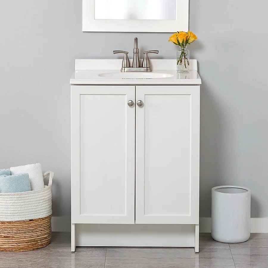 Read our FAQs to learn moreProject Source 24-in White Single Sink Bathroom Vanity with White Cultured Marble Top