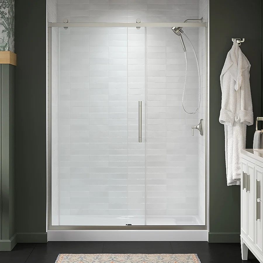 Read our FAQs to learn moreKOHLER Premise Anodized Brushed Nickel Frameless Bypass Sliding Soft Close Shower Door