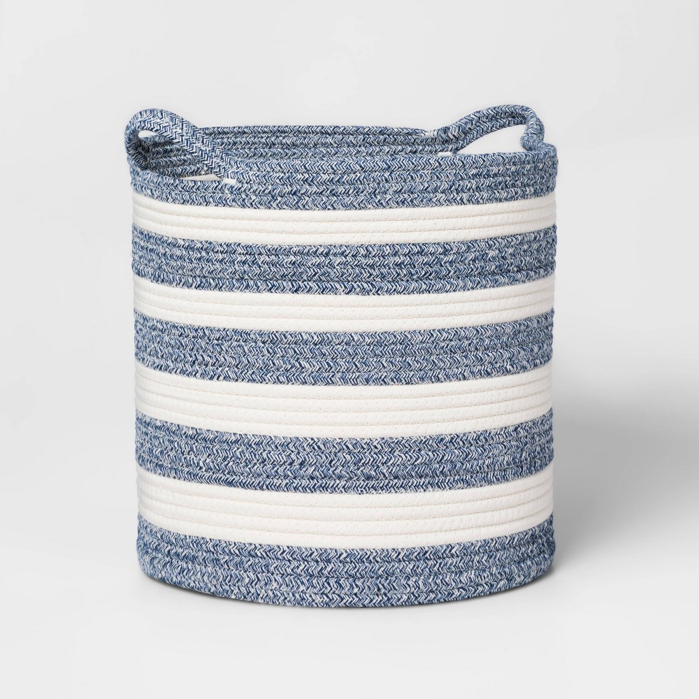 Read our FAQs to learn moreMedium Striped Coiled Kids' Rope Basket Navy - Pillowfort™