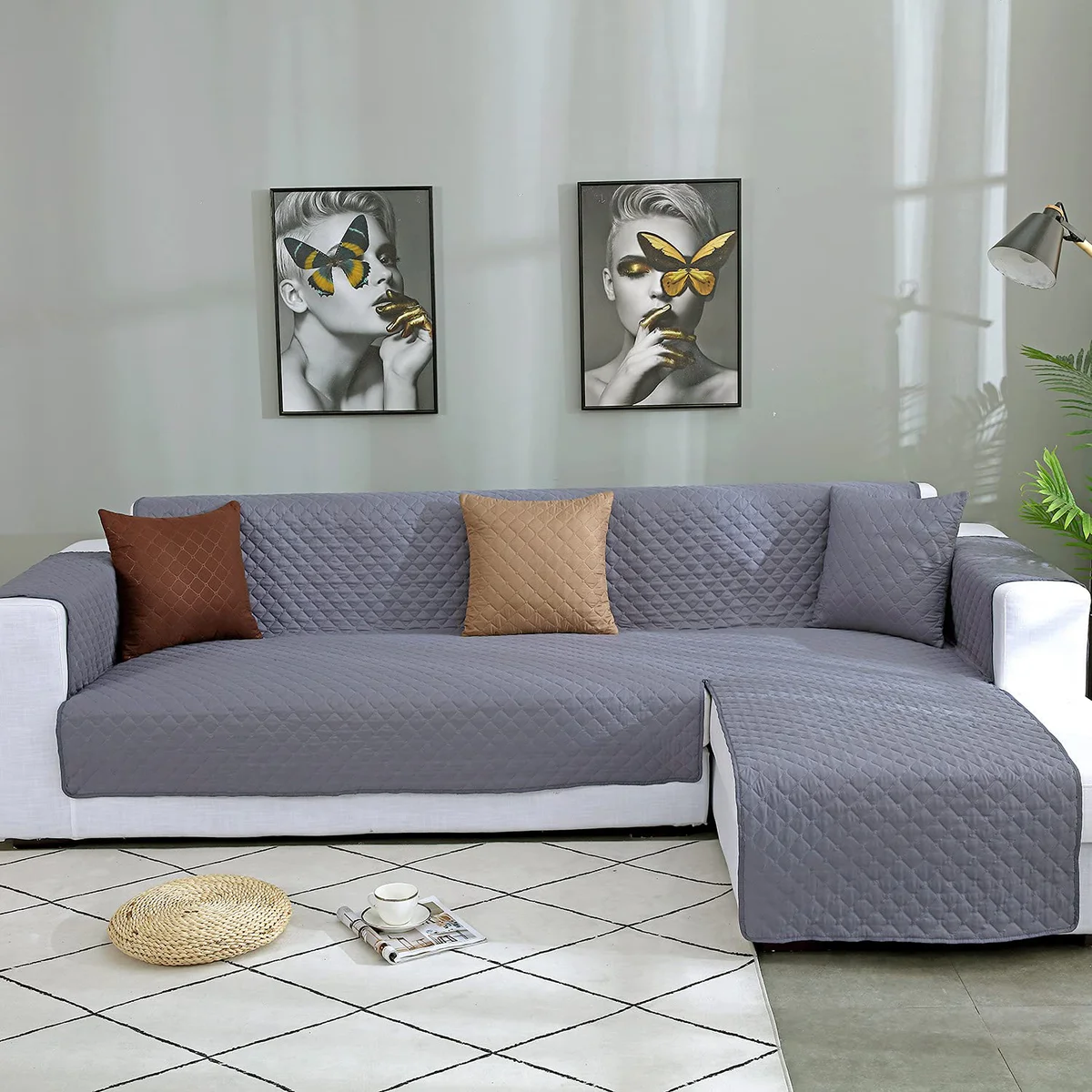 Read our FAQs to learn moreCouch Slipcover L Shape Sofa Cover Sectional w/Chaise, Grey