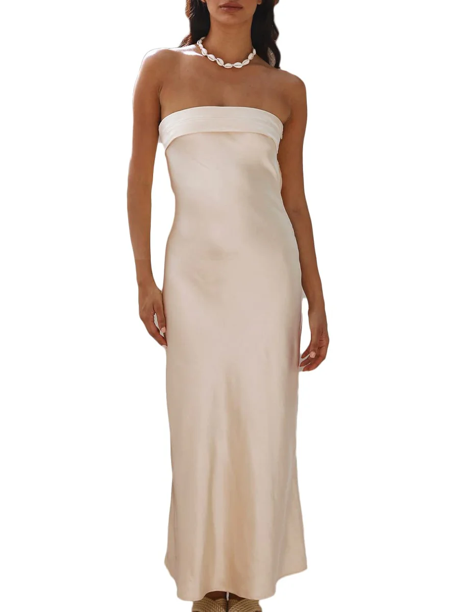 Read our FAQs to learn moreRealtix Satin Silk Backless Tube Tops Maxi Dress for Women