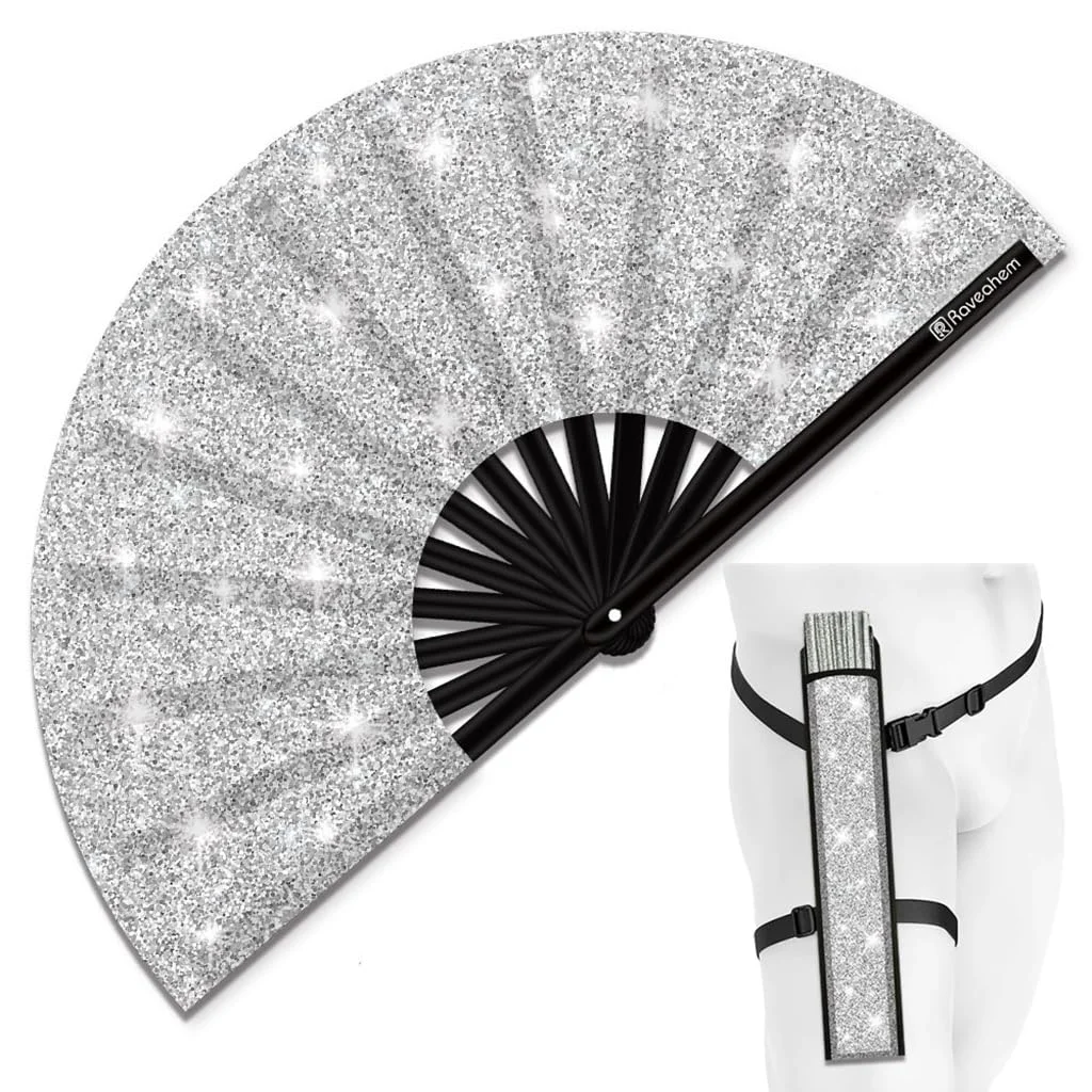 Read our FAQs to learn moreRaveahem Glitter Large Rave Folding Clack Hand Fan