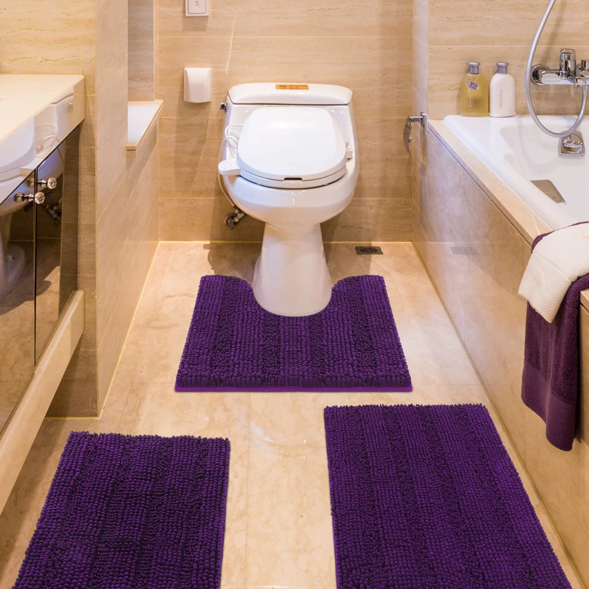 Read our FAQs to learn moreStriped Eggplant Purple Bathroom Rug Set