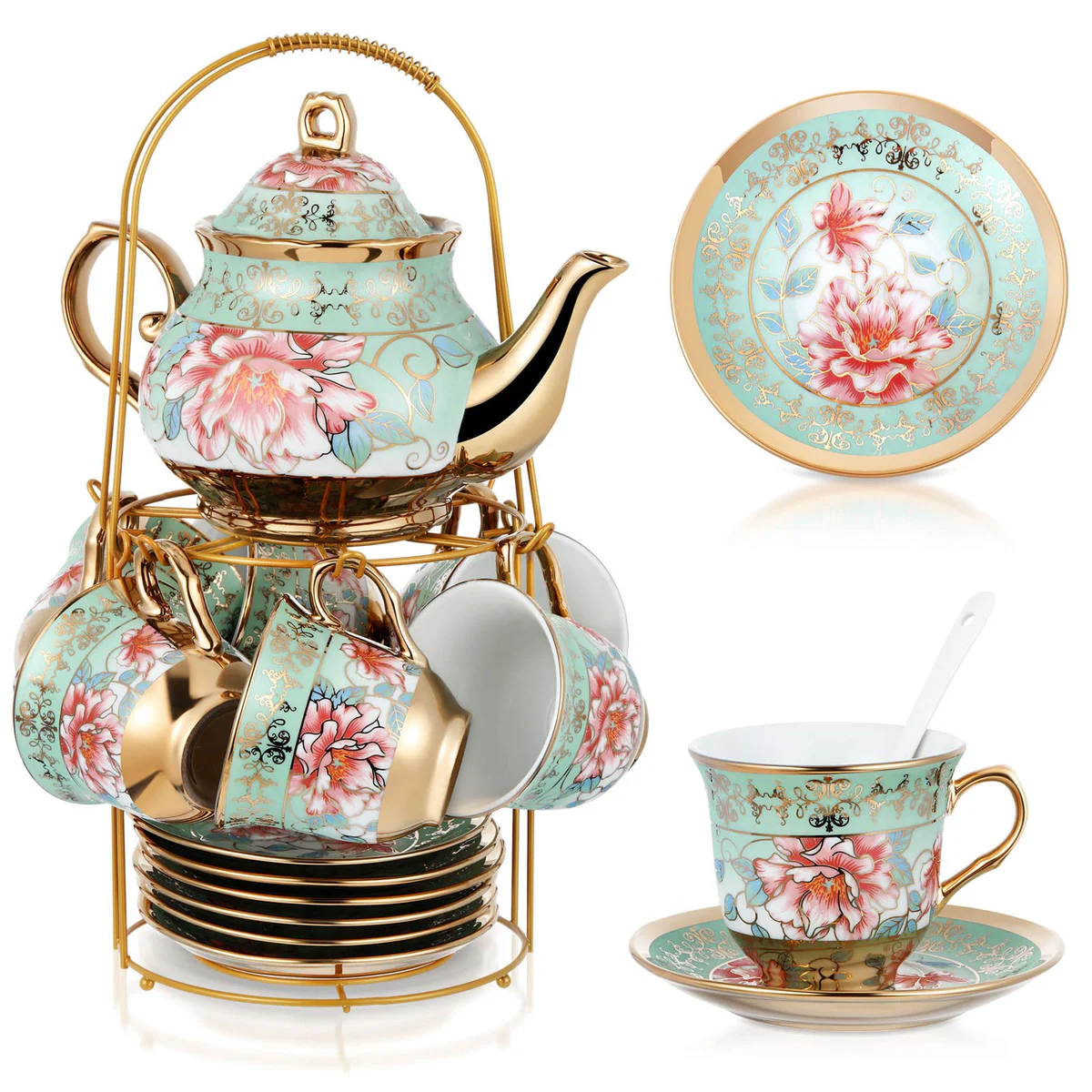 Read our FAQs to learn moreZhehao 20 Pcs Porcelain Tea Set with Metal Holder