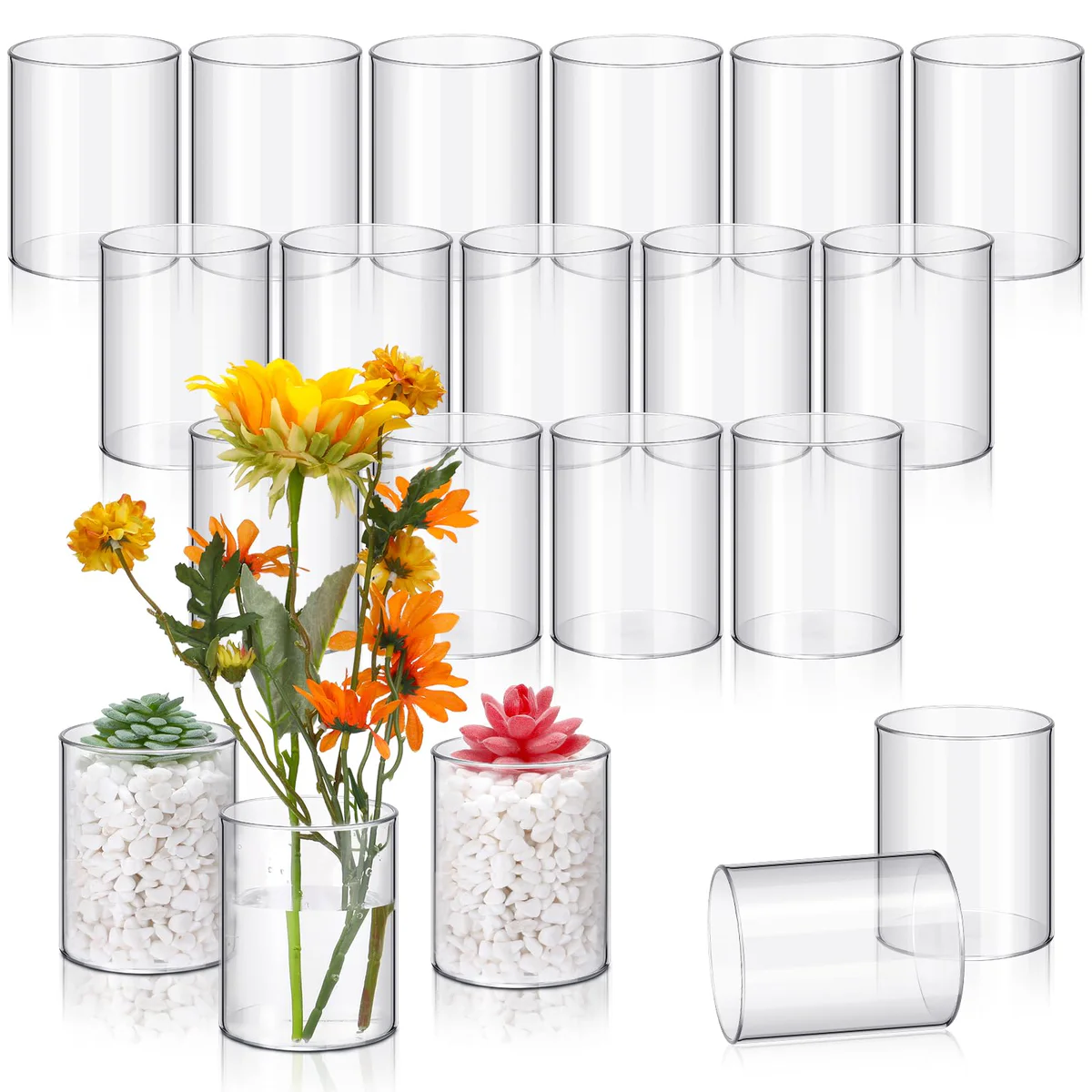 Read our FAQs to learn moreVesici 20 Pcs 4 Inch Plastic Flower Vase Clear