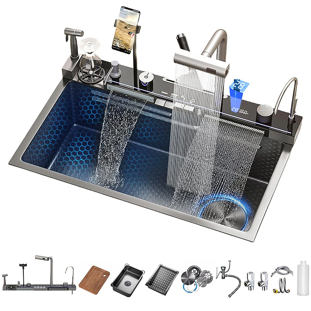cozhao Waterfall Smart Kitchen Sink with Cup Washer