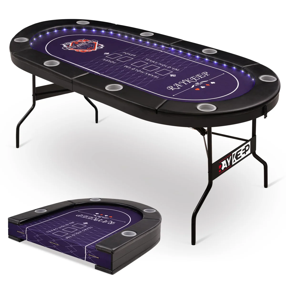 Read our FAQs to learn moreRAYKEEP LED Poker Foldable Texas Hold'em Table